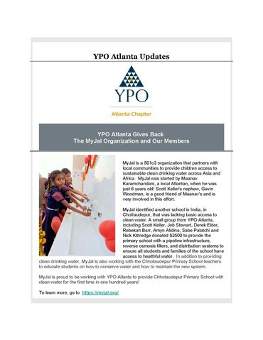 MyJal is the creation of Maanav Karamchandani. When Maanav was six years old, he shared a vision for providing clean drinking water across Asia and Africa. MyJal's projects are taking shape across India. More than 700 million Indians, or roughly two-thirds of the population, do not have adequate sanitation. Due to a lack of clean water, 1.2 million children under the age of 5 die each year in India. As per the World Health Organization, every day, 6000 children die due to water-related diseases globally. MyJal is helping to solve this crisis by providing clean drinking water to those in need.